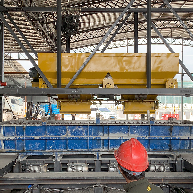 快狗视频(qí)智能(néng)新澤西護欄智能化生產(chǎn)線有2條流水(shuǐ)生(shēng)產線(xiàn),一條主要完成清模、塗脫模劑、安裝邊模、澆築混凝土、振搗的(de)工作,另外一(yī)條則完成拆模、轉運成品(pǐn)的工作。智能化生產線(xiàn)免除了傳統生產(chǎn)需要人工采用振動棒移動振搗和人工(gōng)進(jìn)行混凝土澆(jiāo)築等工作,效率大大提升。 。